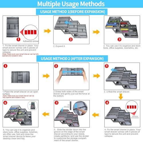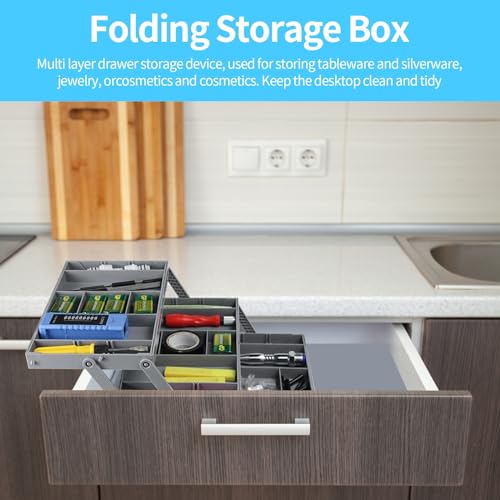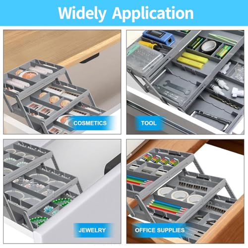 OUWEWIN - منظم أدراج من 3 مستويات قابل للطي - منظم درج ذكي متعدد المستويات قابل للتوسيع، مناسب لتنظيم المكياج والمجوهرات والمستلزمات المكتبية، صينية ضحلة للدرج