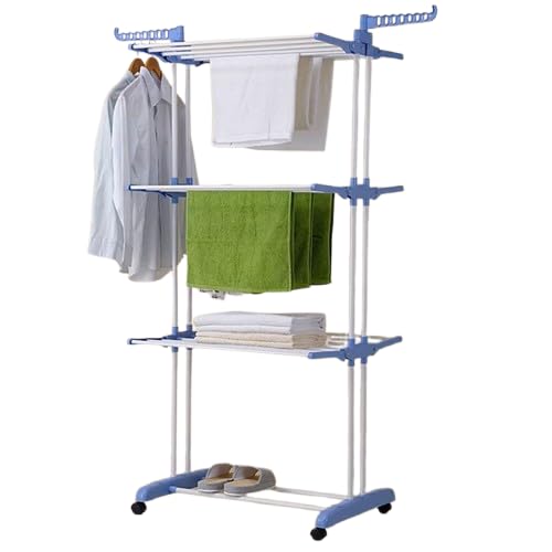 Generic - منشر غسيل معدني 3 أدوار متعدد الاستخدامات | أرفف ضد الصدأ | تصميم متحرك بعجلات - شماعات جانبية للملابس والبدل