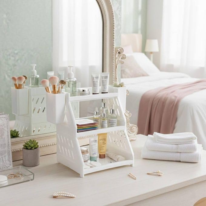 - 【تصميم عملي】يضمن التصميم المتدرج أن العناصر مرئية بوضوح ويمكن الوصول إليها، مما يقلل من الوقت الذي تقضيه في البحث عن الضروريات ويساعدك على الحفاظ على بيئة منظمة باستمرار بأقل جهد مع تحسين كل مستوى من مستويات التخزين