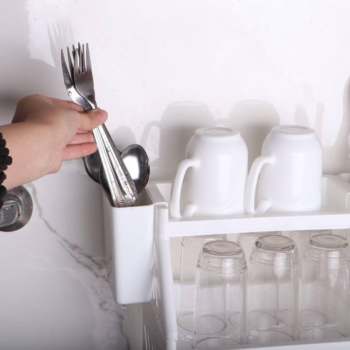 - 【أكواب مزدوجة الجوانب】مزود بكوبين جانبيين قابلين للإزالة، يوفر هذا المنظم مساحة تخزين مخصصة للأشياء الأصغر مثل الأقلام أو الملاعق أو الفرش، مما يضمن أن الملحقات المستخدمة بشكل متكرر في متناول اليد مع الحفاظ على مساحة تخزين رئيسية نظيفة ومنظمة. ️