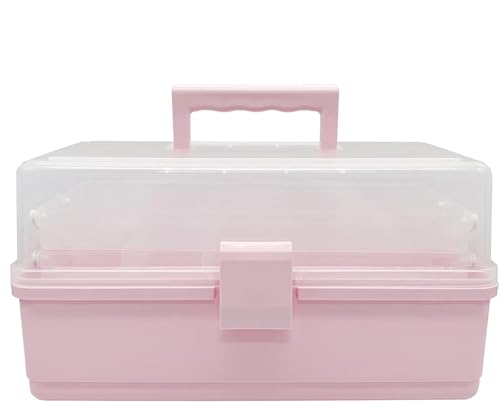 Generic - صندوق تخزين بلاستيكي بثلاثة مستويات – صندوق شفاف كبير مع مقبض آمن، منظم متعدد الاستخدامات للمكياج والأدوية والإسعافات الأولية والحرف اليدوية والألعاب والأدوات مكتبية