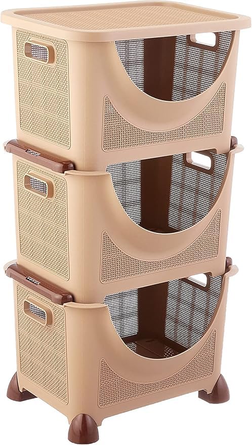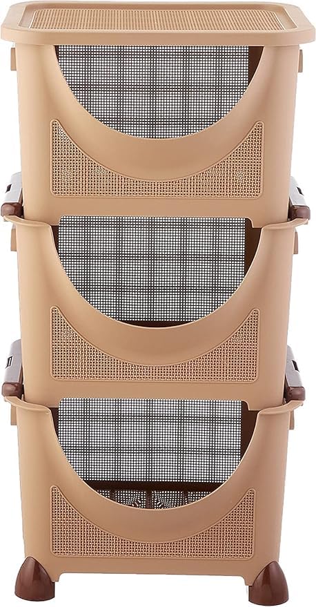 Generic - عربة تخزين بلاستيكية من 3 طبقات بتصميم شبكي، بيج وبني