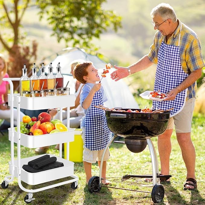 - تصميم متعدد الاستخدامات: عربة دوارة من ثلاث طبقات مع أرفف واسعة مثالية لتنظيم لوازم المطبخ أو مستلزمات الحمام أو المواد المكتبية أو العناصر الحرفية