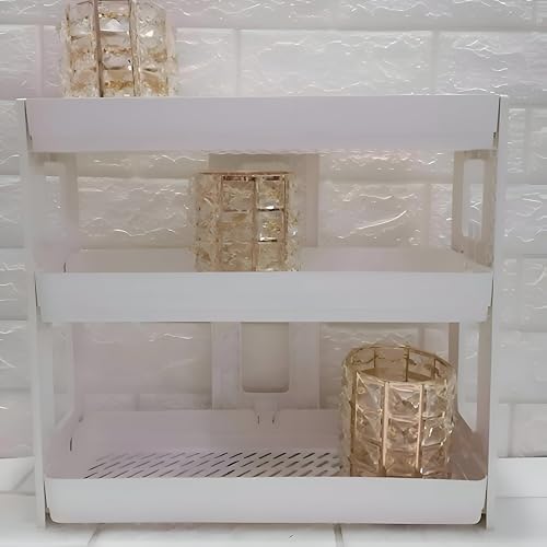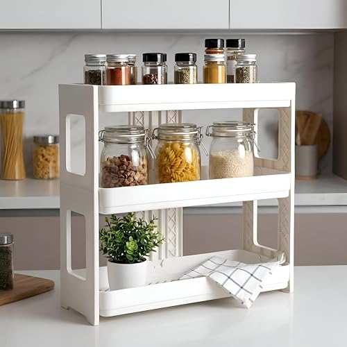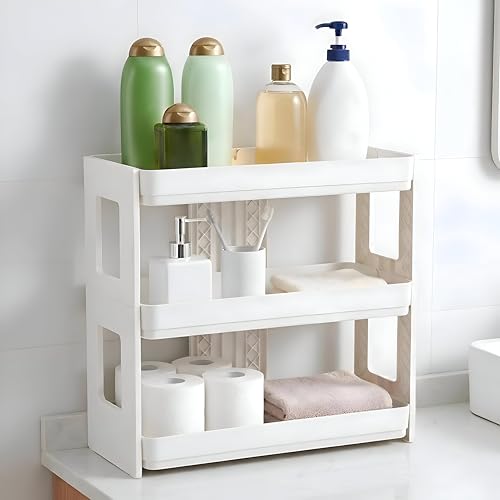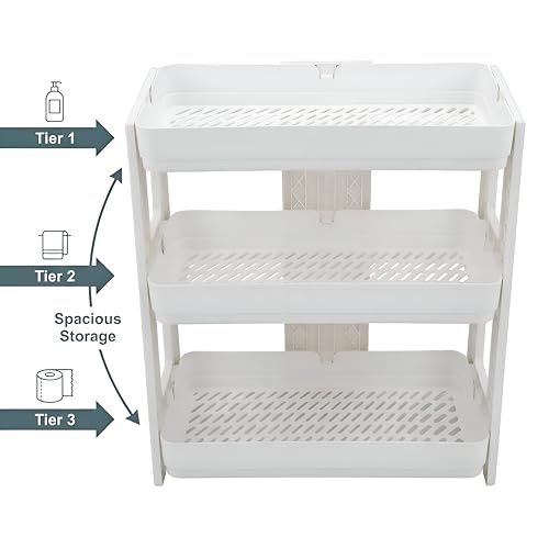 Generic - رف منظم تخزين من 3 طبقات - رفوف بيضاء واسعة بتصميم جيد التهوية للتحكم في فوضى المطبخ والحمام، حل متين وموفر للمساحة.
