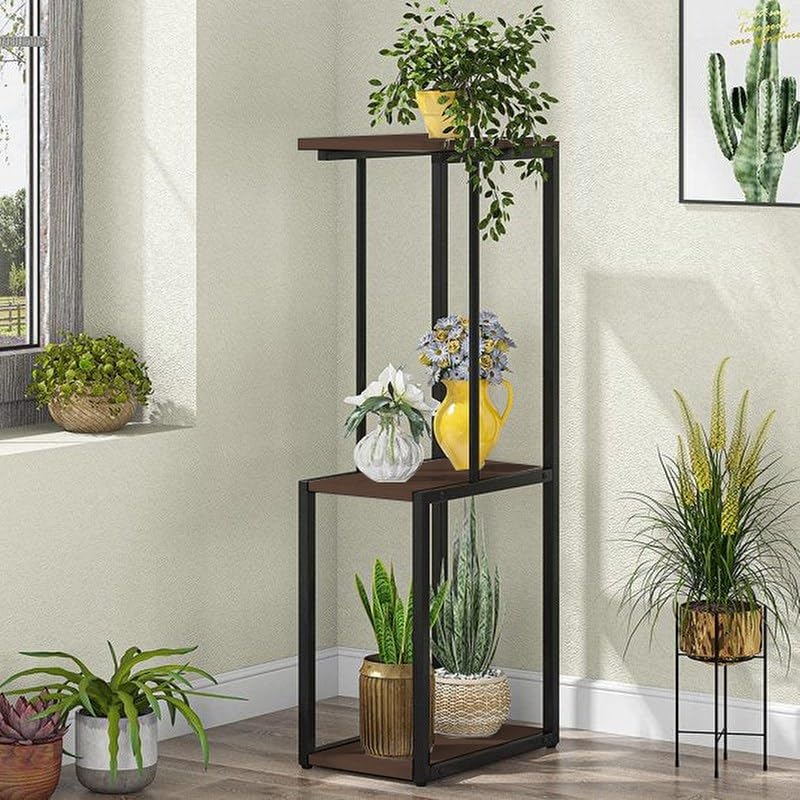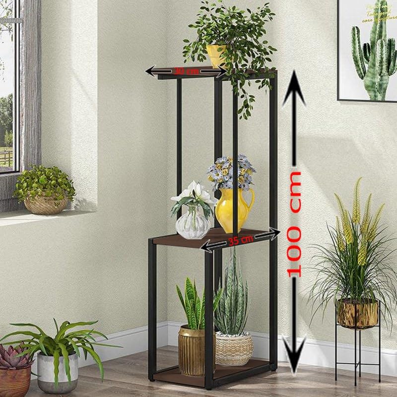 Home Gallery - حوامل رفوف نباتات طويلة من 3 طبقات، بني