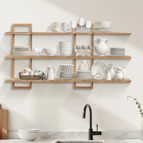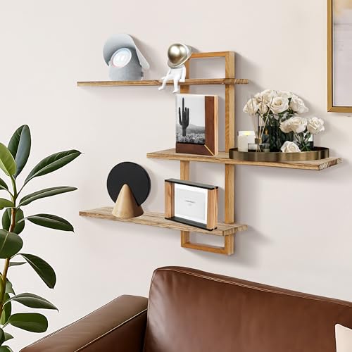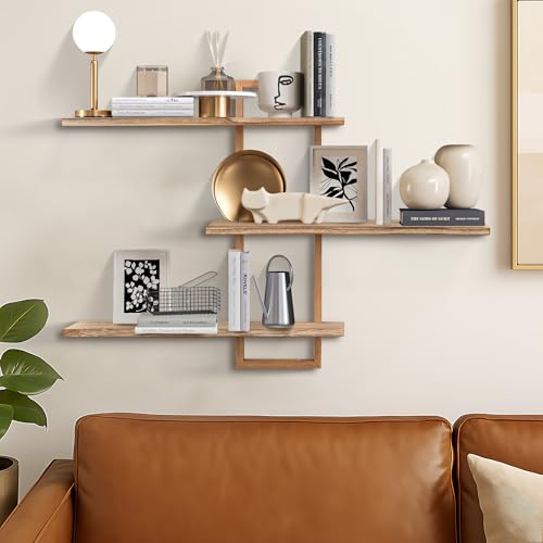 FURAOMEILI - أرفف حائط من 3 طبقات، رف عائم مزخرف للجدار، رف للنباتات والصور للتخزين والعرض، رف خشبي لغرفة المعيشة وغرفة النوم وديكور المكتب المنزلي 57 سم، مقاس L، طبيعي