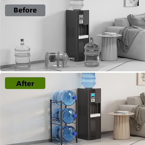 - تصميم من 3 طبقات: رف لزجاجات المياه المتعددة، يوفر حل تخزين زجاجات المياه المكون من 3 طبقات مساحة واسعة لتنظيم وتخزين أباريق سعة 5 جالون، مما يبقيها في مكانها بشكل أنيق ويسهل الوصول إليها.