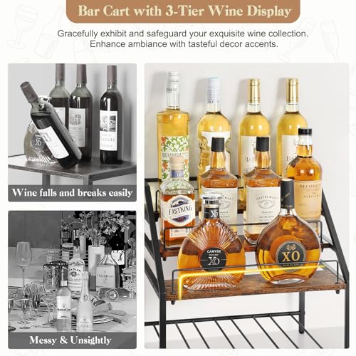 Bikoney - رف مشروبات من 3 طبقات، رف عرض زجاجات المشروبات، منظم شراب القهوة، حامل زجاجات نبيذ صغير للويسكي، ارفف بار ريترو للمنزل والبار، تخزين النبيذ الأنيق للمطبخ وتناول الطعام