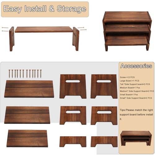 - ما ستحصل عليه: مجموعة من 3 رافعات خشبية. صينية تقديم من ثلاث طبقات بنفس الحجم أدناه: كبير - طول 16.5 × عرض 7 × ارتفاع 6.8 بوصة؛ متوسط-طول 15 × عرض 7 × ارتفاع 4.9 بوصة؛ صغير-طول 13.3 × عرض 7 × ارتفاع 2.9 بوصة؛ حامل عرض مطور من 3 طبقات قوي يمكن استخدامه لسنوات قادمة. لا تحتاج إلى شراء المزيد.