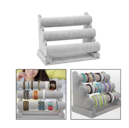Generic - حامل أساور من 3 طبقات بلون رمادي قطيفة لتنظيم الساعات
