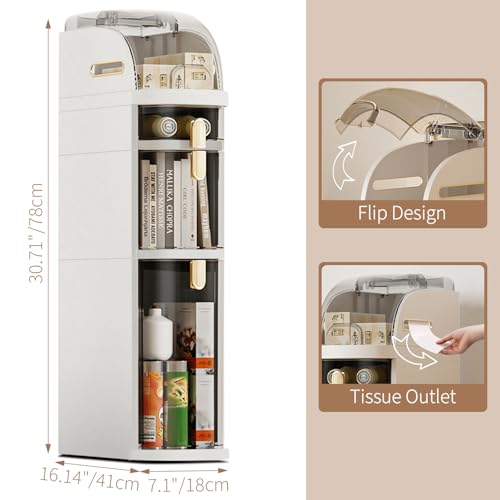 Gaderth - دولاب تخزين رفيع للحمام مكونة من 3 طبقات، حامل ورق تواليت قائم بذاته ومقاوم للماء، منظم تخزين ضيق للحمام مع عجلات وأدراج للمطبخ وغرفة النوم وغرفة الغسيل