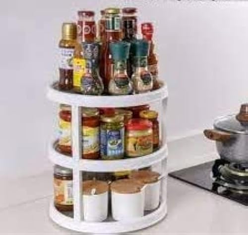 Spaceshoop - رف منظم لأدوات المطبخ بتصميم دوار مكون من 3 أدوار - قطعة واحدة، بلاستيك