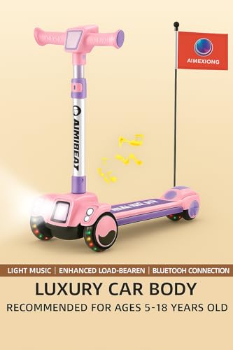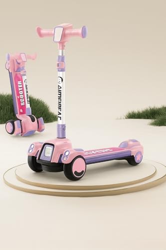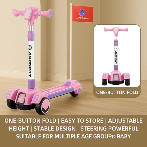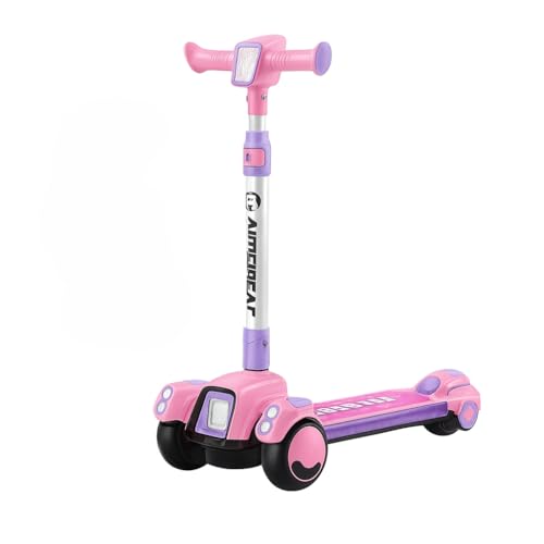 IGEturbo - سكوتر للاطفال بثلاث عجلات باضاءة LED، سكوتر دفع قابل للطي مع سطح عريض مضاد للانزلاق، فرامل قدم خلفية ونظام امالة للتوجيه، لعبة خارجية للاولاد والبنات من سن 6 سنوات فما فوق، زهري
