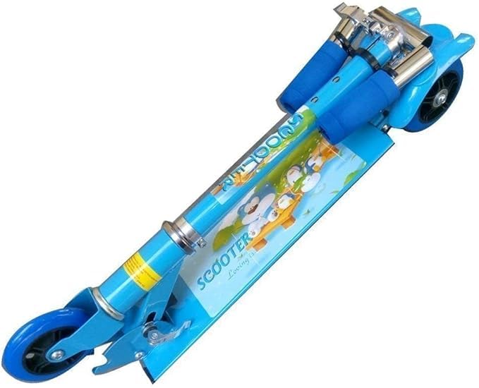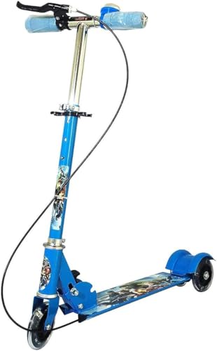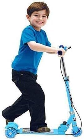 Generic - سكوتر دفع بثلاث عجلات قابل للطي للاطفال مع فرامل وجرس، باضاءة LED على عجلات، ارتفاع قابل للتعديل، ازرق، للاولاد والبنات فوق 3 سنوات