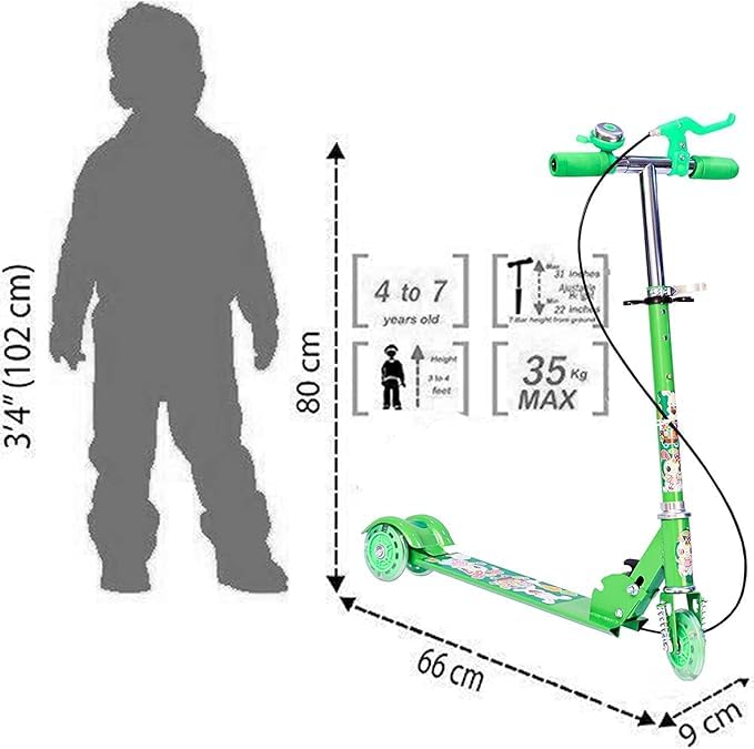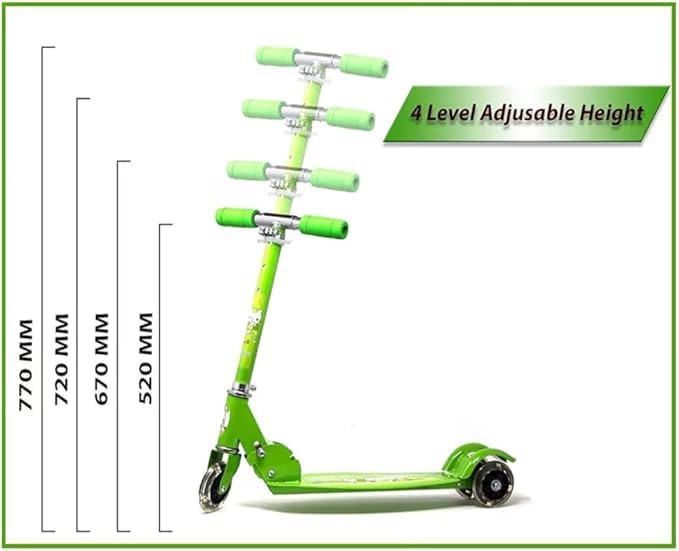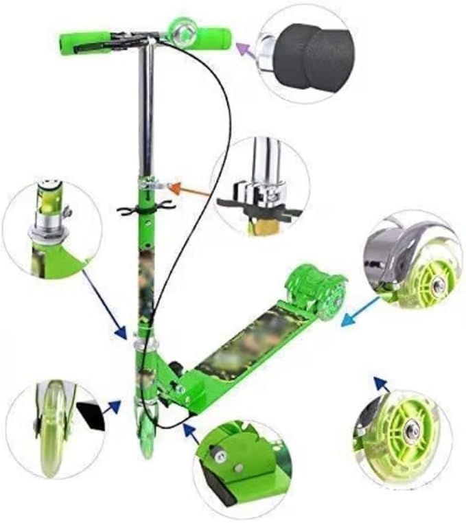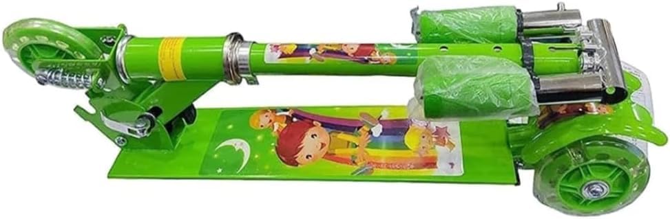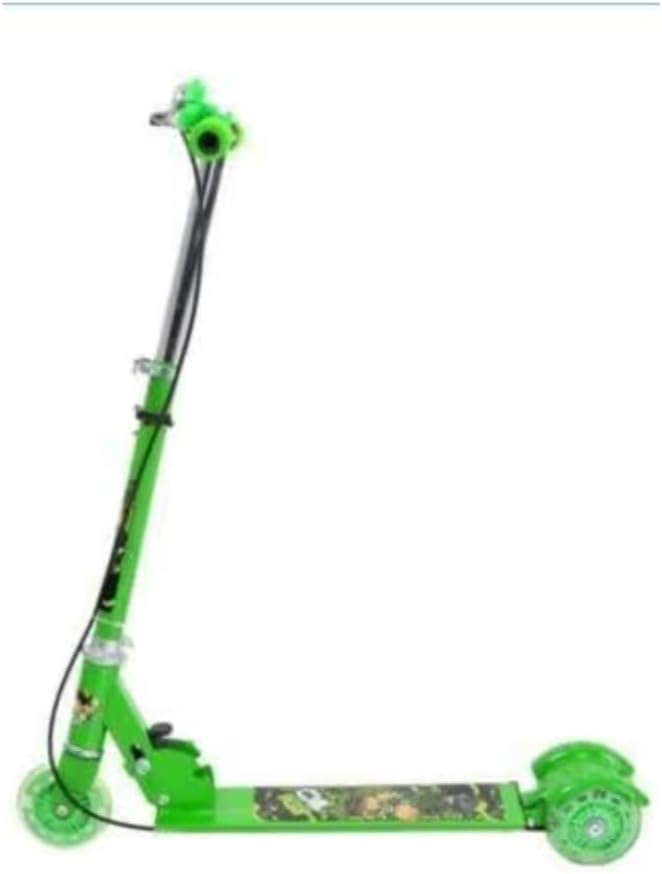 Generic - سكوتر دفع بثلاث عجلات قابل للطي مع فرامل وجرس، مصباح LED على عجلات، ارتفاع قابل للتعديل للاولاد والبنات فوق 3 سنوات، اخضر