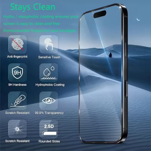 - عبوة من 3 واقيات شاشة من الزجاج المقوى: يحتوي هذا المنتج على 3 واقيات شاشة من الزجاج المقوى وأدوات تنظيف زجاج مقوى متوافق مع ايفون 16 وايفون 15 وايفون 15 برو