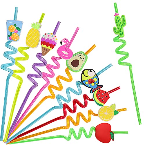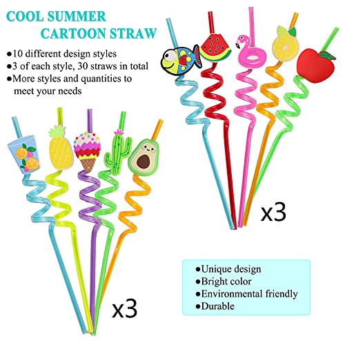 AHYS - شفاطات بلاستيكية قابلة لإعادة الاستخدام بنمط فاكهة الشاطئ لهدايا حفلات أعياد الميلاد للاطفال من 30 قطعة، شفاطات مرحة على شكل فاكهة الفلامنجو والصبار وسمك المحيط لحفلات الكوكتيل الاستوائية - 10 أنماط