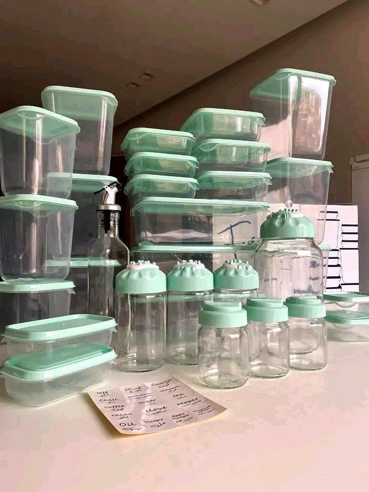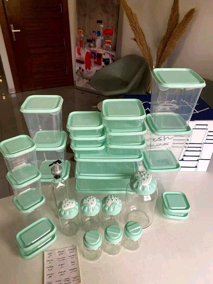 - طقم تخزين متكامل: يتضمن 30 قطعة من حاويات التخزين الشفافة بأغطية خضراء محكمة الإغلاق لتنظيم الثلاجة والمطبخ
