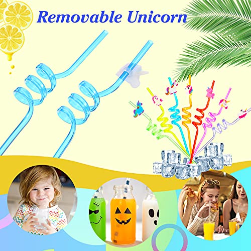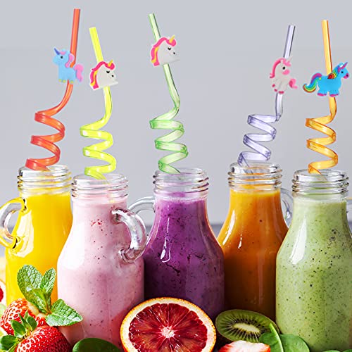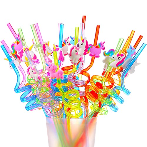 Patelai - شفاطات شرب بلاستيكية بتصميم يونيكورن قابلة لإعادة الاستخدام، 30 شفاطة لمستلزمات حفلات أعياد ميلاد بنمط يونيكورن مع فرشتين تنظيف لحفلات الأطفال ومستلزمات تزيين حفلات أعياد الميلاد، طقم من 32 قطعة