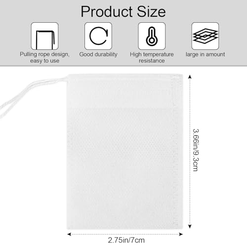 - متعدد الاستخدامات: لا يقتصر استخدام أكياس الشاي هذه على تحضير الشاي السايب فحسب، بل تُستخدم أيضًا لتحضير القهوة ونقع التوابل والأعشاب وشاي الزهور المُحضّر منزليًا والمزيد. الإضافة إلى ذلك، فهي مناسبة جدًا لتحضير أكياس الأعشاب، وأكياس حمّام القدمين، أو غيرها من استخدامات العناية الشخصية.