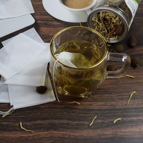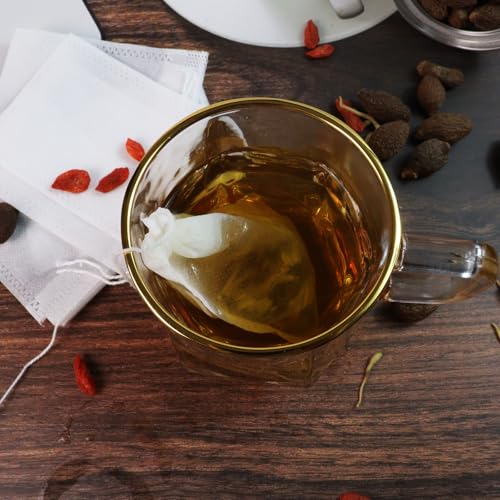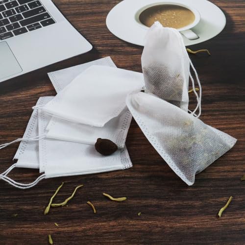 Wahijihe - أكياس شاي فارغة للاستخدام مرة واحدة من قماش غير منسوج مزودة بخيط شد مناسبة للشاي السايب والقهوة والتوابل والأعشاب مقاس 9 × 7 سم، 300 قطعة