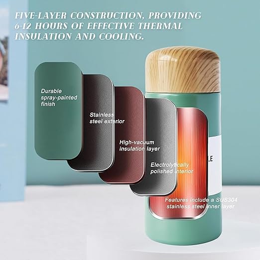 - النمط يلتقي بالطبيعة - غلاف أنيق من الخشب المحبب يحول الكوب الحراري إلى إكسسوار عصري؛ يعتقد الأصدقاء أنه معدات مصممة، أنت فقط تعلم أنه صلب 304 تحته.