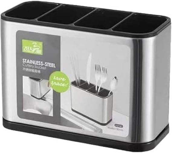 Generic - "منظم مطبخ بـ 4 خانات من الاستانلس 304 - متانة وأناقة وفعالية مع صفاية المعالق الراقية، تجربة فريدة لمطبخ متألق وجميل"|من عام