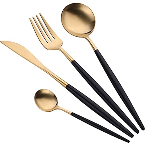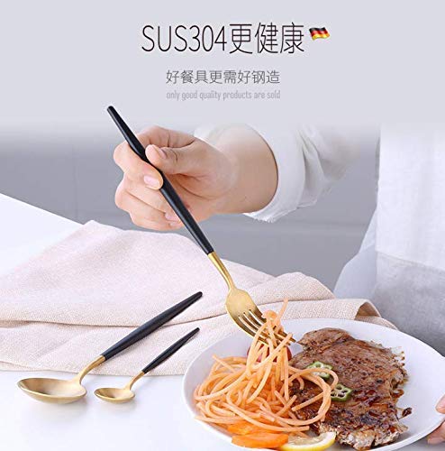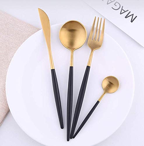 Other - طقم ادوات مائدة من الستانلس ستيل 304 مكون من سكين وشوكة وملعقة مجموعة كاملة من ادوات المائدة على الطراز الغربي، صناعة متقنة بلون اسود وذهبي، 4 قطع