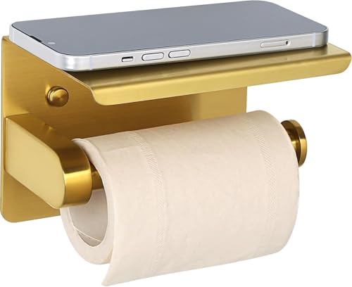 Generic - حامل مناديل حمام من الستانلس ستيل 304 مع رف موبايل – مثبت على الحائط، مقاوم للصدأ، تصميم عملي وأنيق للحمام والمطبخ (دهبي)