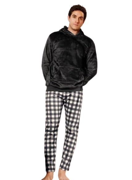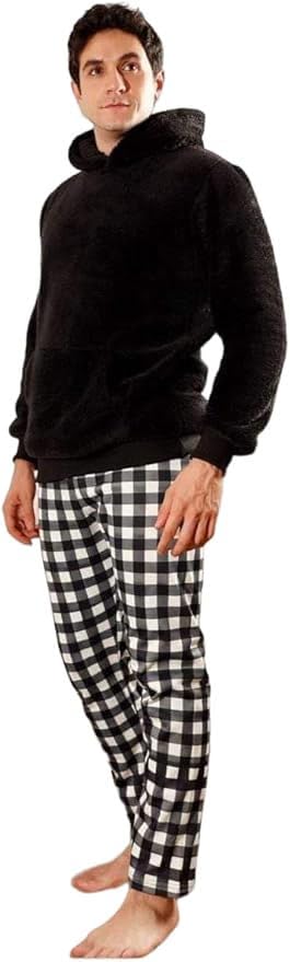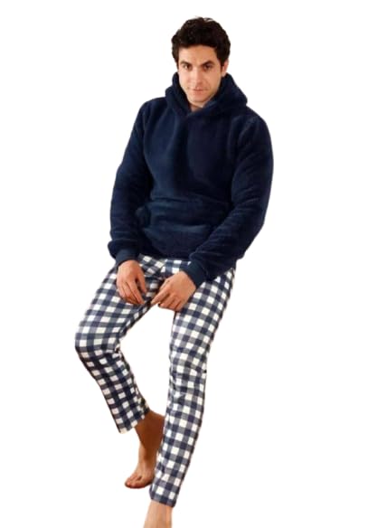 Generic - بيجامه رجالى شتوي - قطعتين سويت شيرت فرو بولر و بنطلون قطيفه وشين - لون أسود او كحلى حسب المقاس المتاح- موديل رقم #: 307-1168