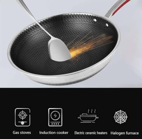 Generic - مقلاة ووك عميقة غير لاصقة بغطاء زجاجي شفاف ومقبض مريح مقاوم للحرارة مقاس 30 سم للطهي الصحي وتوزيع الحرارة المتساوي وسهلة التنظيف للمطابخ الحديثة