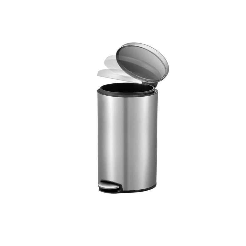 Generic - سلة مهملات 30 لتر مع غطاء وسلة داخلية قابلة للازالة، دائرية، ستانلس ستيل غير لامع