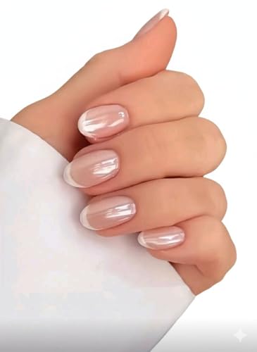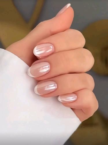 Generic - أظافر صناعية قصيرة بيضاوية بتصميم فرنسي نورديك كلاسيك عصري أنيق مناسبة للاستخدام اليومي بلمسة ريترو عصرية بسيطة، لون أبيض - 30 قطعة