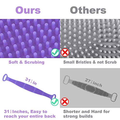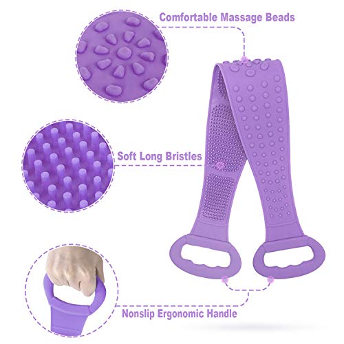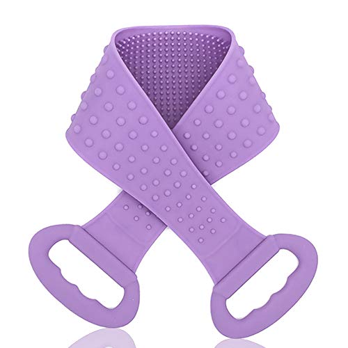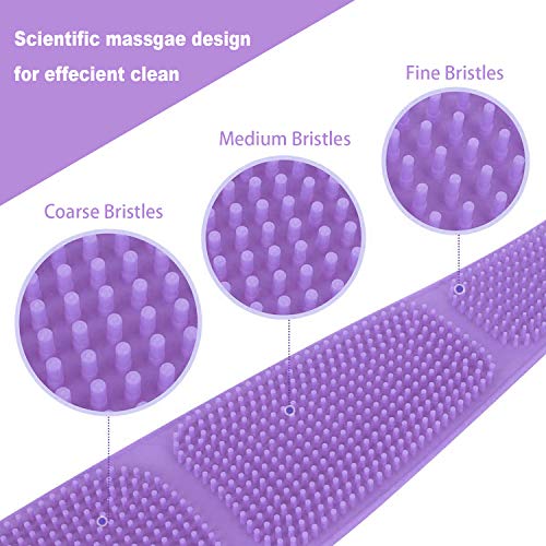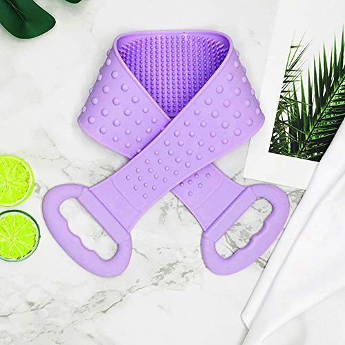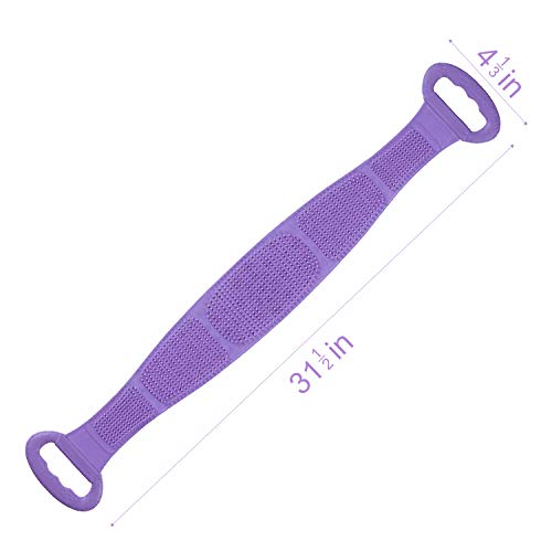 Fancymay - ليفة تنظيف وتقشير الجسم بطول ممتد 31.5 بوصة مصنوعة من السيليكون، ليفة تنظيف وتقشير الظهر للاستحمام، فرشاة تنظيف الظهر، فرشاة تنظيف وتقشير الجسم، امنة غذائيا، 80 سم (ارجواني)