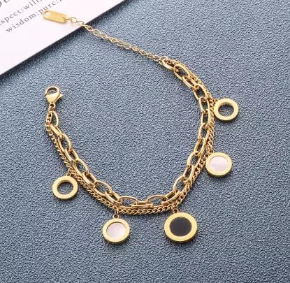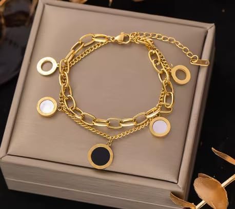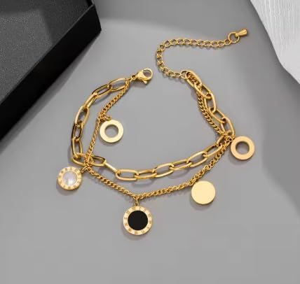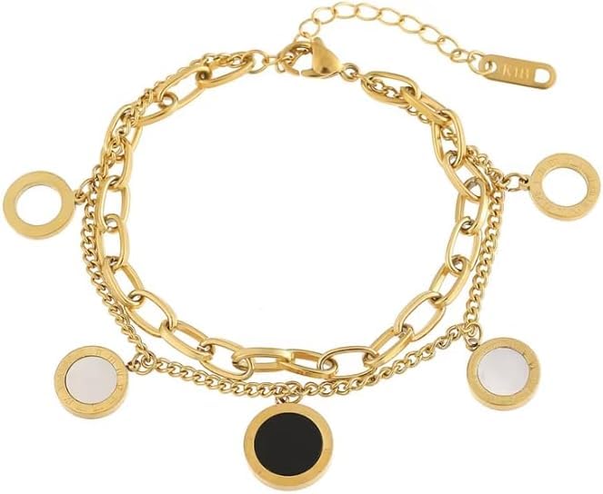 Generic - سوار بقلادة من الستانلس ستيل 316L مطلي بالذهب مضاد للصدأ بأرقام رومانية هندسية للنساء والفتيات لا يبهت للبيع بالجملة