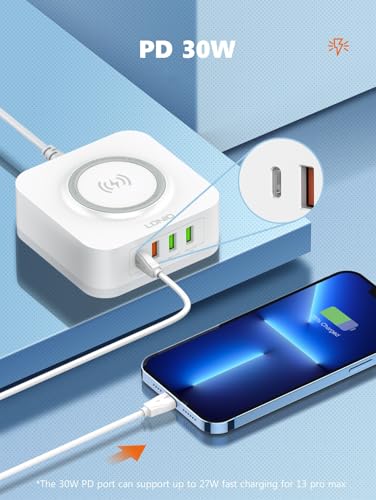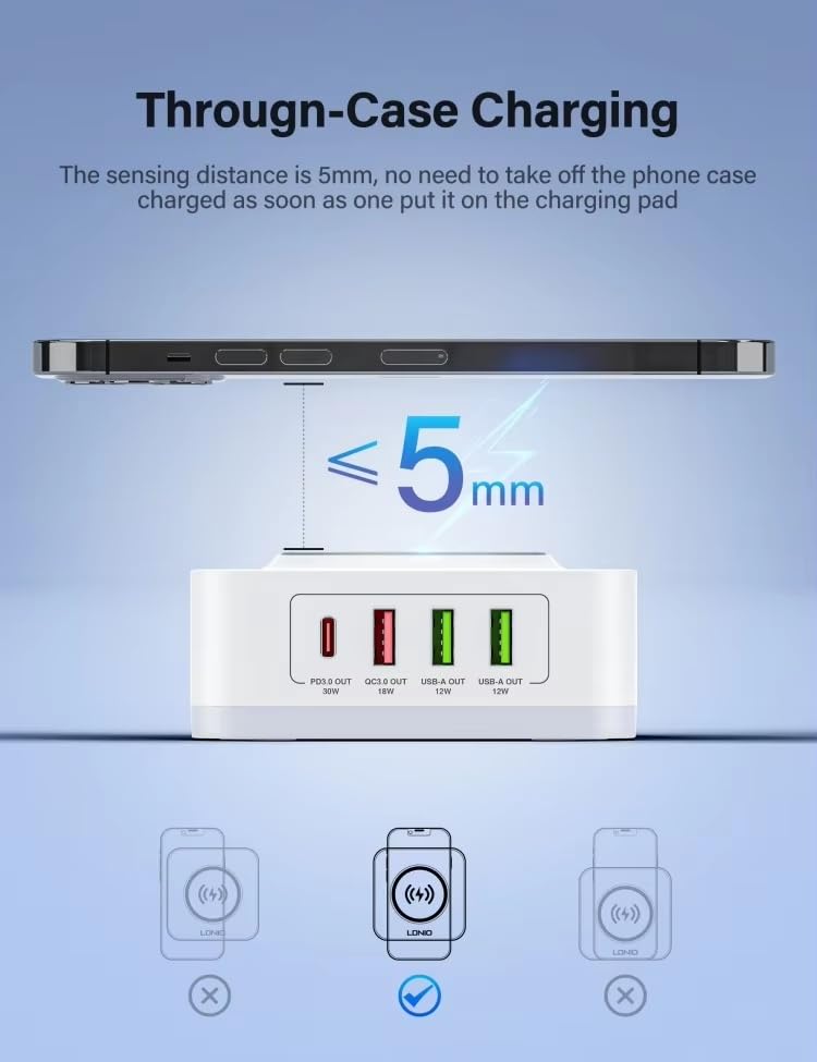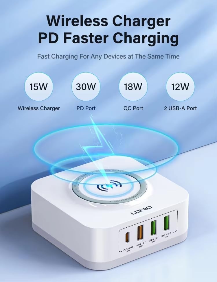 - شاحن لاسلكي متعدد المنافذ مع سرعة شحن عالية.