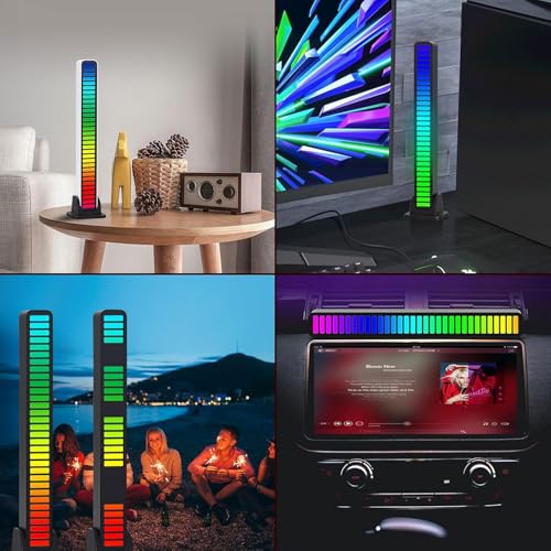 - أضواء مستويات الموسيقى متعددة الألوان: يحتوي مؤشر الطيف الصوتي بالفضاء اللوني ار جي بي على 32 خرزة مصباح ليد ملونة، وميكروفون عالي الحساسية ووظيفة إلغاء الضوضاء، يمكنك ضبطه حسب الرغبة لتحقيق التأثير الذي تريده. يمنحك جمالًا زخرفيًا ديناميكيًا.