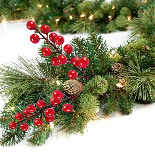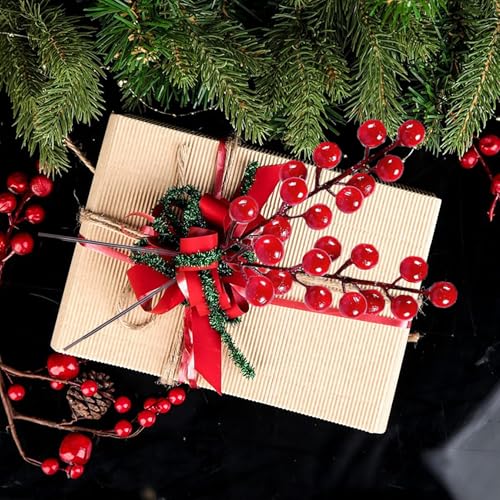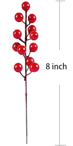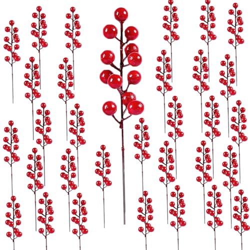 fegwave - مجموعة فروع توت أحمر صناعي لتزيين شجرة الكريسماس بطول 20 سم تُستخدم كحشوات وزينة للأشجار، أغصان هولي وديكورات احتفالية مثالية للحرف اليدوية والأعمال بنفسك وأجواء الكريسماس والشتاء، عبوة من 32 قطعة
