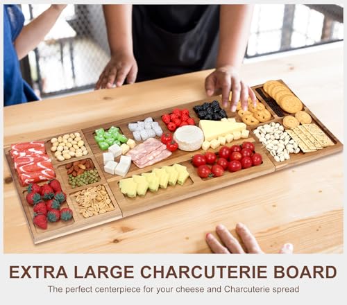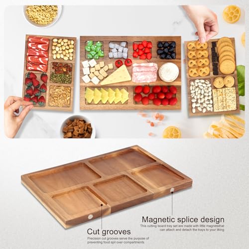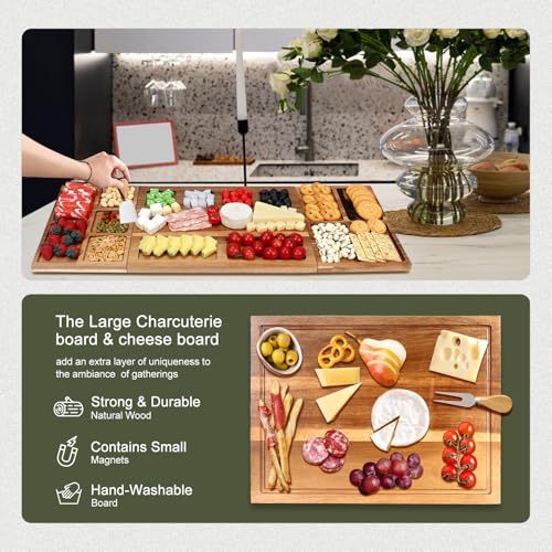 Hilislog - لوح جبن مغناطيسي كبير للغاية من خشب الاكاسيا، طبق تشاركوتيري نباتي لتقديم الطعام والوجبات الخفيفة والفواكه واللحوم والجبن والمقرمشات، مقاس 81 × 12 سم