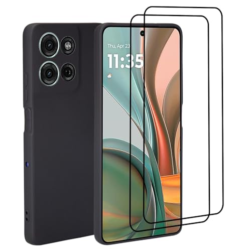 32nd - جراب حماية سيليكون نحيف ومتين لموبايل موتورولا موتو G75 شبكة الجيل الخامس 5G من 32 ان دي مع 2 × شاشة حماية (اسود)