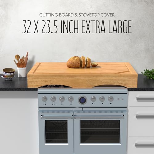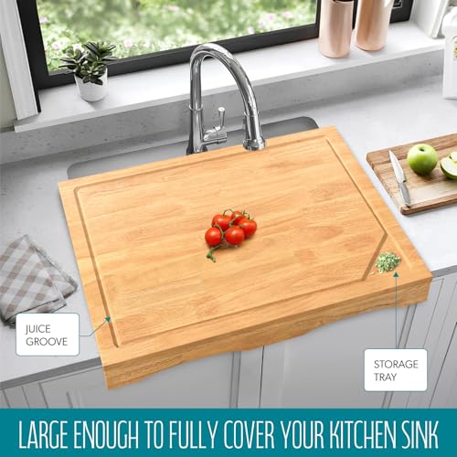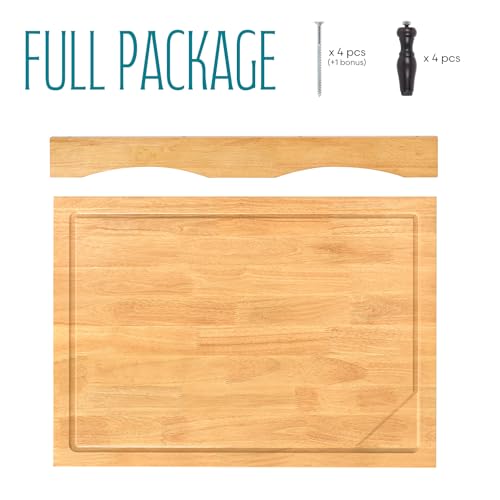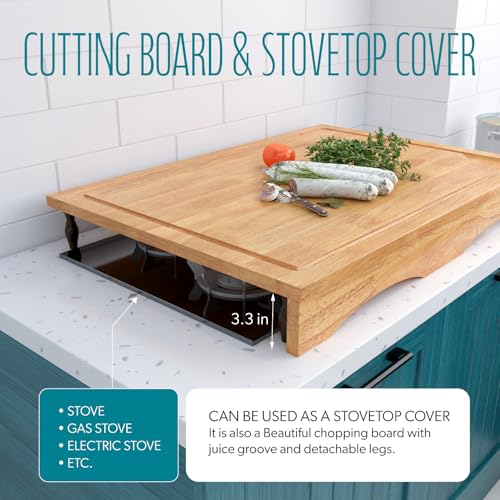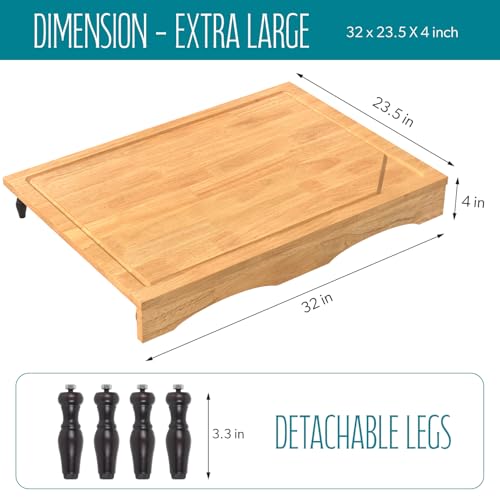 BETSEO - لوح تقطيع خشب صلب كبير للغاية مقاس 81 سم × 60 سم وغطاء للموقد - لوح تقطيع 2 في 1 فوق الحوض وغطاء موقد الغاز مع أرجل قابلة للفصل وأخاديد عصير - لوح مثالي للمطبخ (موديل 1)