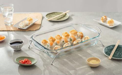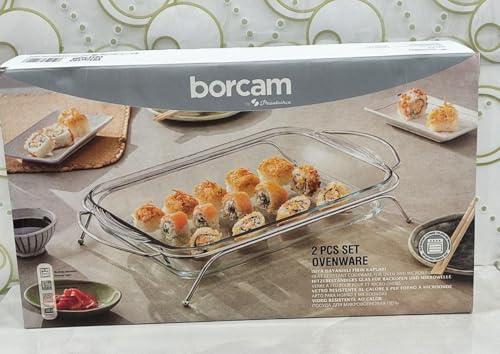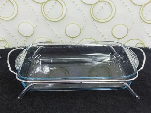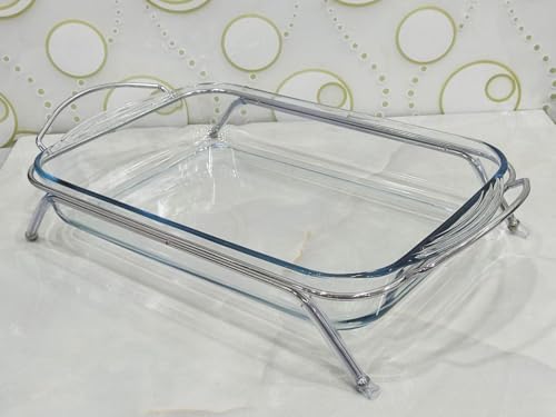 Generic - طقم طاجن بيركس مستطيل ، بوركام تركي، قطعة علي استاند معدن ، للفرن وغسالة الأطباق والميكرويف والتقديم مباشرة، 32x30x10سم