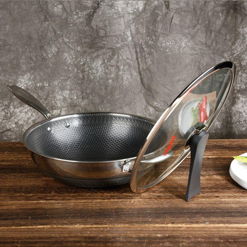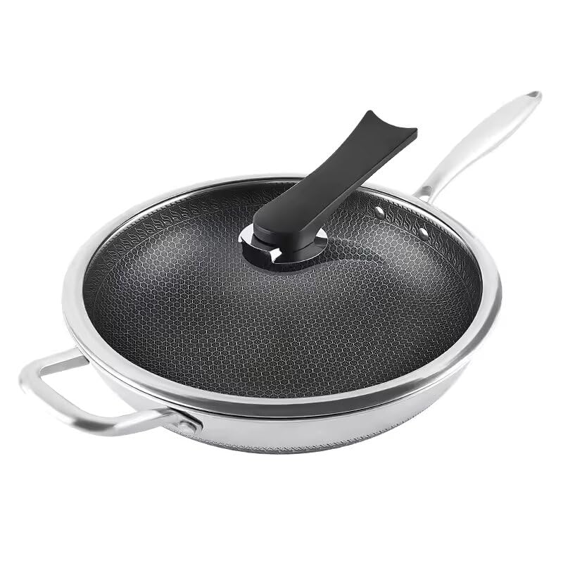 Generic - مقلاة عميقة نانو غير لاصقة 34 سم - هيكل من الستانلس ستيل - طلاء ماسي غير لاصق - غطاء شفاف - عقارب من أجل ثبات وتحكم أفضل - مقاومة للخدش