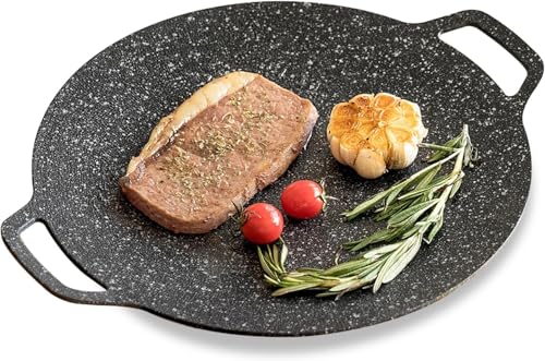 AREXOL - طاسة شواء غير لاصقة من الجرانيت، طاسة قلي ثقيلة التحمل لـطهي شرائح اللحم والدجاج والسمك والفطائر والكريب في المنزل، مع مقابض مزدوجة، وسهلة التنظيف، ومتينة وصحية بقطر 34 سم