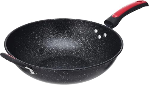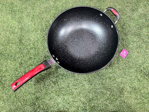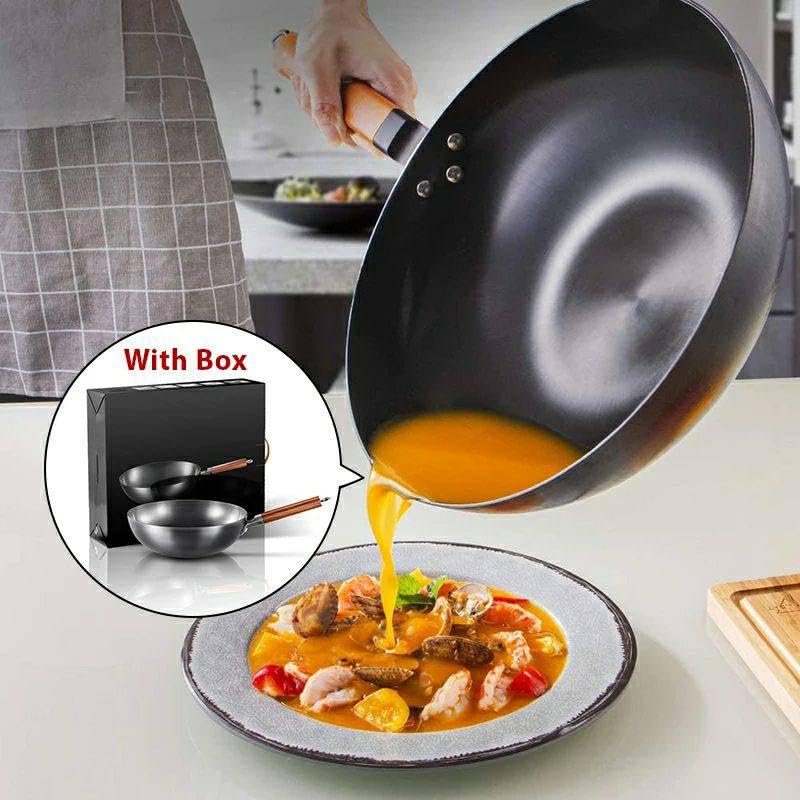 Generic - مقلاة ووك شديدة التحمل غير لاصقة مقاس 34 سم - مقلاة سميكة من الستيل الكربوني مع طلاء تفلون للقلي العميق والشاورما والنقانق والطبخ في المطبخ المنزلي