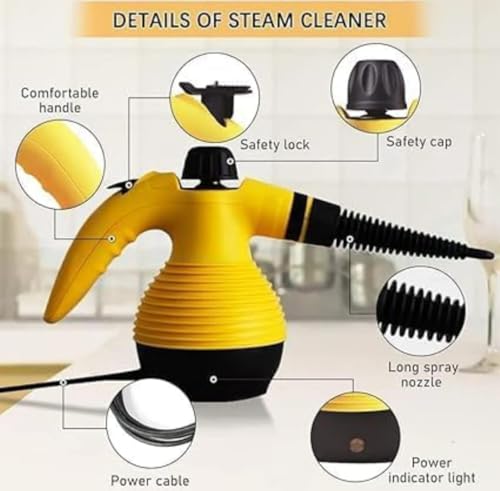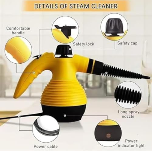 - منظف بخار عالي الضغط 350 مل 1200W محمول متعدد الأغراض لتنظيف اليدين مع 9 اكسسوارات مثالية لإزالة البقع لتنجيد السيارات والمنزل والمطبخ والسجاد والكنبة.