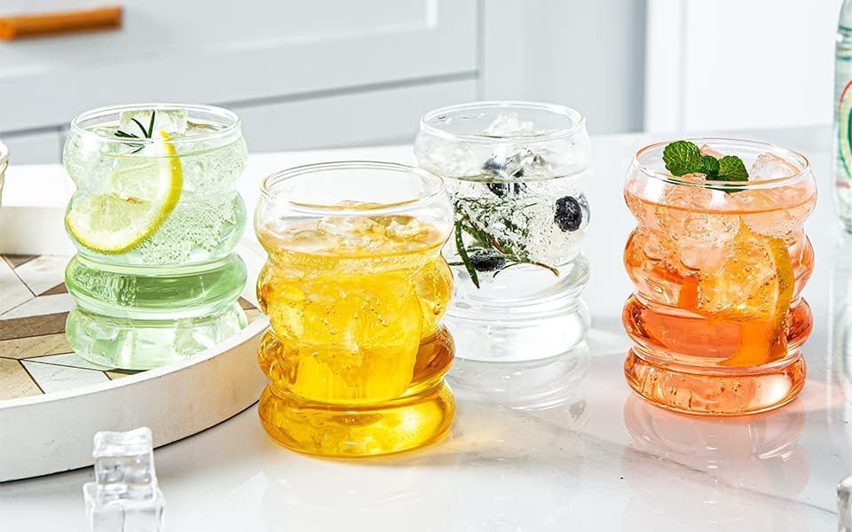 Generic - كوب زجاجي 350 مل شفاف مقاوم للماء على شكل متعرج للقهوة والمشروبات اكواب زجاجية جمالية فقاعي مياه شرب شفافة