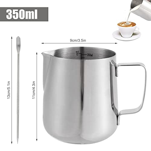 YMKWZ - ابريق صنع رغوة الحليب 350 مل لماكينة القهوة من الستانلس ستيل 304 مع ملعقة، كوب حليب لصنع الكابتشينو واللاتيه والاسبريسو