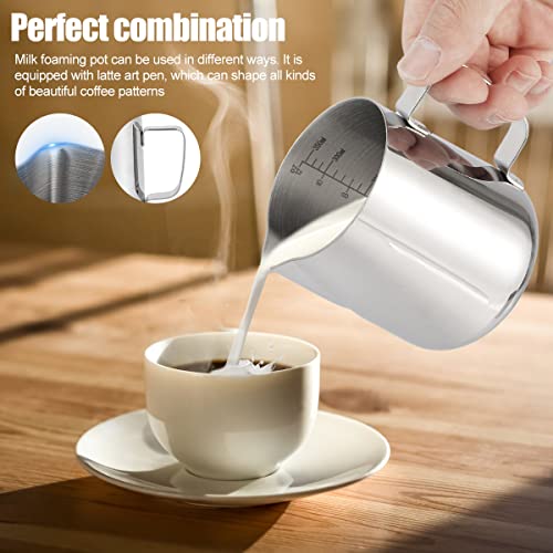 - [متعدد الأغراض] هذا المزيج المثالي من إبريق الحليب والقهوة لاتيه مثالي لصنع الحليب المزبد أو المطهو على البخار للإسبريسو أو الكابتشينو أو الشوكولاتة الساخنة.