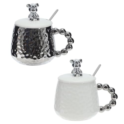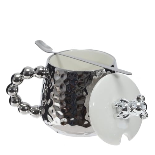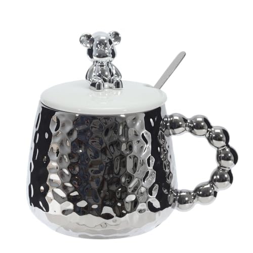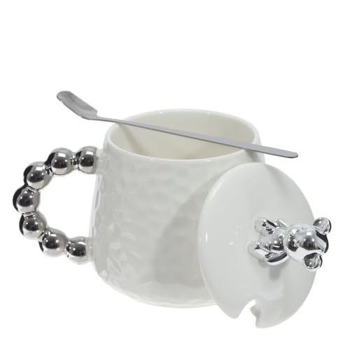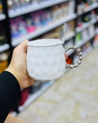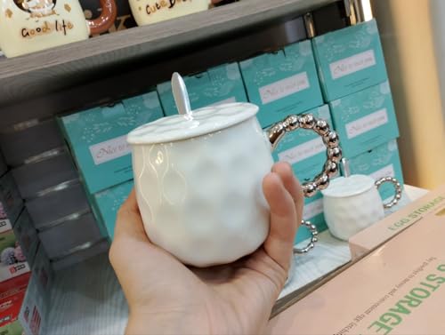 Generic - مج بورسلين بابلز أنيق بسعة 350 مل مع غطاء ومعلقة للمشروبات الساخنة والباردة تصميم عصري عملي وسهل الاستخدام في المنزل والمكتب